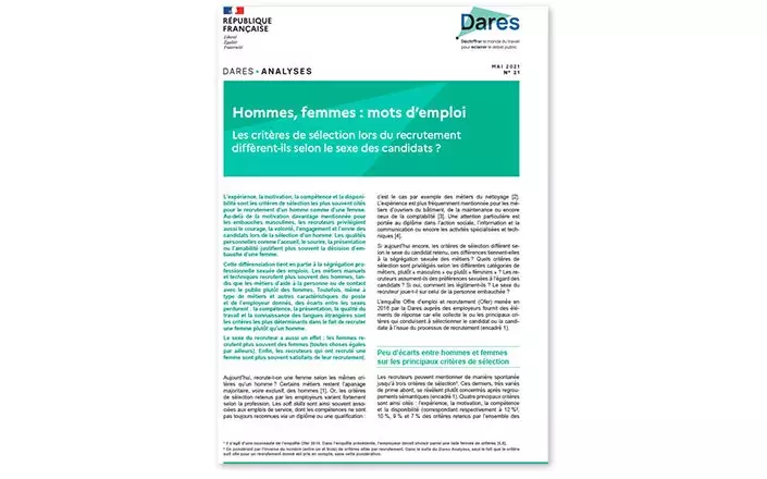 Les critères de sélection lors du recrutement diffèrent-ils selon le sexe des candidats ? C’est à cette question que répond cette étude, sur la base des données de l’enquête Offre d’emploi et recrutement (OFER) menée en 2016 par la Direction de l'animation de la recherche, des études et des statistiques (DARES).