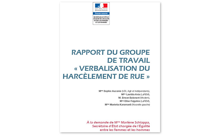 Dans ce contexte, la secrétaire d’État en charge de l’Égalité entre les femmes et les hommes a annoncé, le 19 septembre 2017, la constitution d’un groupe de travail sur la verbalisation du harcèlement de rue, composé de députés des groupes La République en Marche, Modem, Nouvelle gauche et UDI, Agir et Indépendants. Le 28 février, le groupe de travail a présenté son rapport à la Secrétaire d'Etat.